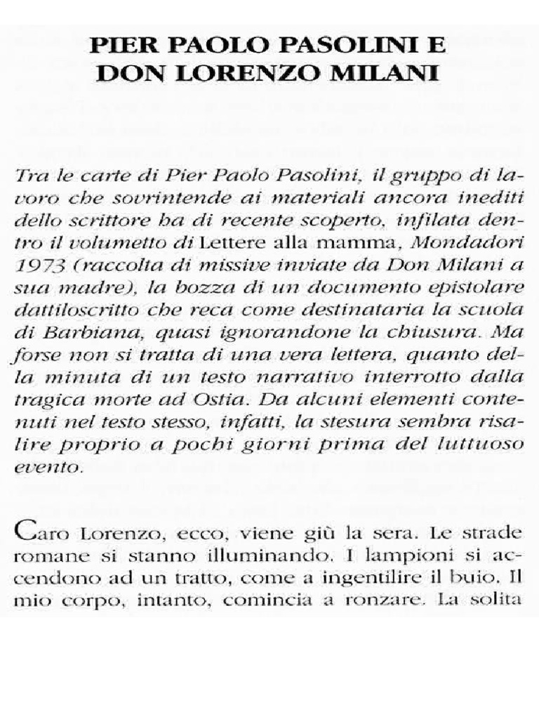 Lettera a mia madre pasolini. Scoperta lettera inedita di Giacomo Casanova a Cambridge una lettera inedita di giacomo casanova (1725-1798), che rispondeva piccato all'insistenza del nipote carlo che gli aveva chiesto del denaro, definendolo "pazzo scapestrato, impertinente, insolente", è stata scoperta nella biblioteca del trinity college dell'università di cambridge, in gran bretagna, all'interno di un'edizione ottocentesca delle … Il mostro - Andrea Cortellessa Umana e troppo umana, forse: stando al grido d'amore, e del suo contrario, che è Supplica a mia madre, highlight di Poesia in forma di rosa. A partire da questi primi Sessanta, l'opera di Pasolini è un viluppo di tensioni. Buonasera | News Pasolini sosteneva che il mare è la purezza iniziale. Se penso a questo, penso alla gioia che trasmettono i delfini, penso al primo bagno, al primo bacio, a un amore che si rinnova. È lo stato esistenziale a cui dover ritornare, ma come bisogna attrezzarsi culturalmente e psicologicamente per tornare all'epifania del mare?» La VOCE agli italiani - Trent'anni fa la mafia (e non solo) uccise a ... "A casa mia da quando è morto mio padre, è entrato chiunque. Ma se all'inizio questa presenza continua era giustificata come forma di attenzione, alla luce di tradimenti e depistaggi, ci ha fatto capire che c'era una forma di controllo, una necessità di una sorta di 'stordimento'.